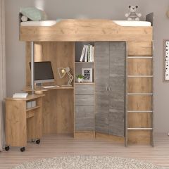 Кровать-чердак Бриз-1 УНИ (Дуб Крафт золотой/Камень тёмный)