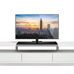 Напольная тумба под телевизор с топом черного стекла 850х450 мм, тремя выдвижными ящиками и полкой под аппаратуру. Внутренние размеры ящиков: 560х350хh140 мм. Ширина центральной части полки 870 мм. Высота полки 140 мм. Габариты и конструкция тумбы позволяют устанавливать телевизоры диагональю до 80', весом до 70 кг.
