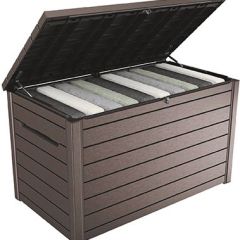 Главными достоинствами стильного ящика ONTARIO BOX являются большая вместительность и простой монтаж. Благодаря этим преимуществам такие предметы, как садовые подушки, покрывала, пледы или необходимые садовые инструменты найдут свое место в практично организованном пространстве. Механизм, облегчающий открытие крышки, представляет дополнительную эксплуатационную ценность продукта. Благодаря своей прочности ящик также может использоваться в качестве сиденья для 2 человек.